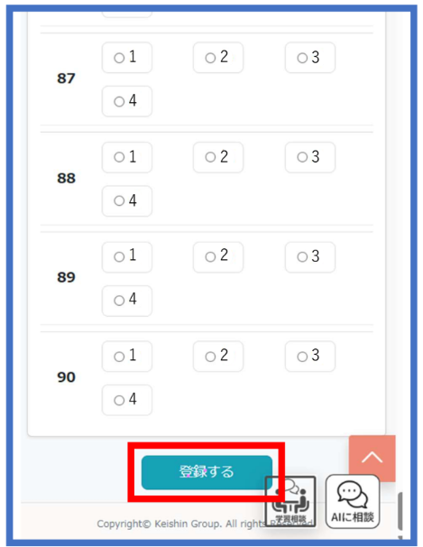 ・自分の解答を修正したい場合は、同様に別の解答を選択し、再度「登録する」ボタンを押せば上書きされます