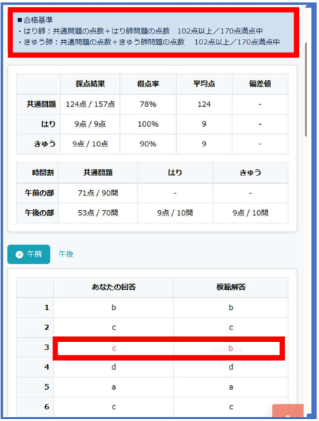 ※鍼灸ははり・きゅうそれぞれ共通問題と合算した点数で確認してください