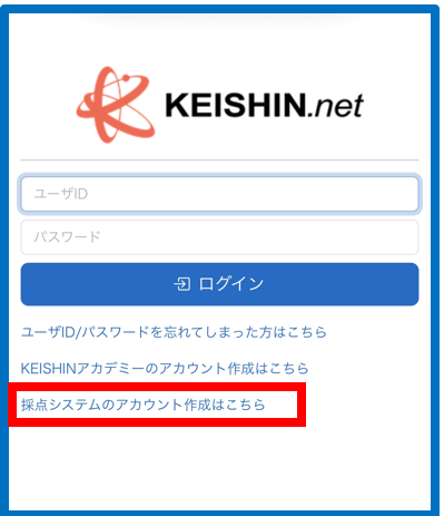① 「KEISHIN.net」ログインページの「採点システムのアカウント作成はこちら」からアカウントを新規作成する